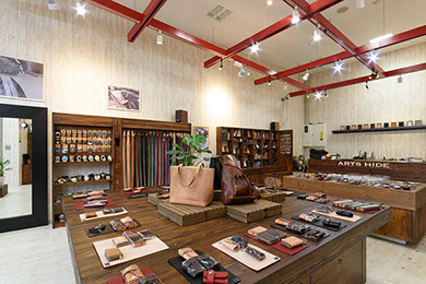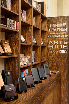 「本物:genuine」をコンセプトにオリジナルハンドメイドの高品質なレザーアイテムを取扱う店舗の改装。レザー特有の経年変化(エイジング)を店舗イメージの基とし、ローコストながらもそれを感じさせない什器計画によって商品を見やすく、際立たせるような計画としている。当初の無骨な店舗イメージを一新させ、女性でも入店しやすいシンプルで清潔感が漂う店舗空間となった。