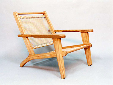 やすらぎやくつろぎを求めるときに座る椅子。全体の横幅を広めにとってあるのであぐらをかいて座ることが可能。座面と背もたれにペーパーコードを使用しており、編み方を密ではなく少し隙間を空けた格子状にすることで程よい弾力性が生まれ、座ったときのフィット感が絶妙となっている。