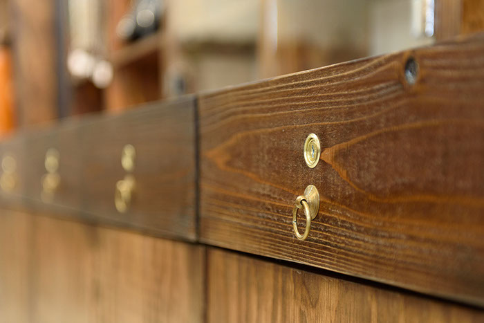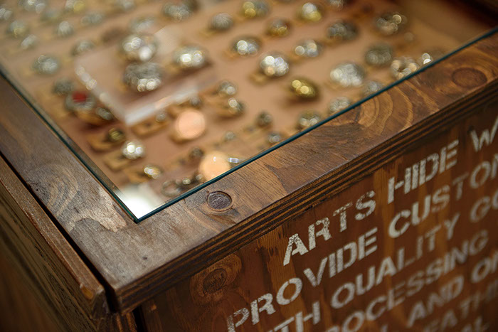 「本物:genuine」をコンセプトにオリジナルハンドメイドの高品質なレザーアイテムを取扱う店舗の改装。レザー特有の経年変化(エイジング)を店舗イメージの基とし、ローコストながらもそれを感じさせない什器計画によって商品を見やすく、際立たせるような計画としている。当初の無骨な店舗イメージを一新させ、女性でも入店しやすいシンプルで清潔感が漂う店舗空間となった。