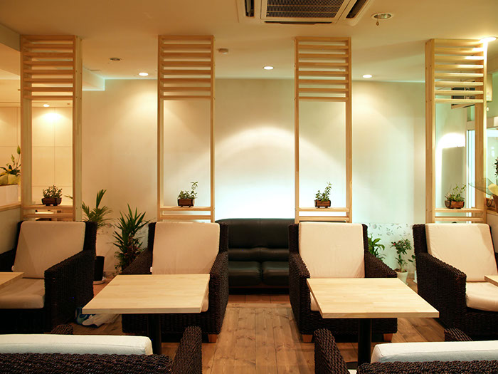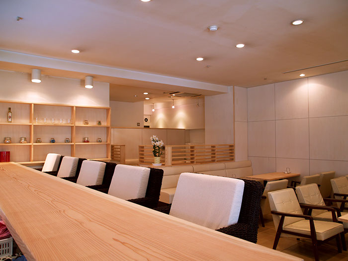 ウェディングプランナーである施主が経営する「カフェ一体型のブライダルサロン」。 挙式を無事に終えた新郎新婦の2人といつまでも繋がっていたいという思いを込めて、こだわりのフードメニュー(イタリアン)をそろえたカフェとサロンを併設させている。天然木をふんだんに使い、自然素材特有の温かみのある雰囲気と圧迫感のない居心地の良い空間作りを心がけた。
